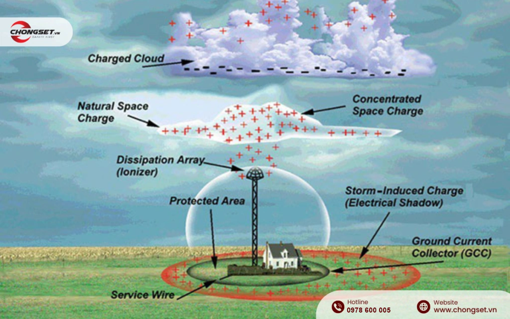 - Hệ thống chống sét đánh thẳng bằng công nghệ tiêu tán đám mây điện tích: Công nghệ này sử dụng ác thiết bị đặc biệt để trung hòa điện tích trong đám mây, ngăn chặn sự hình thành tia sét.
