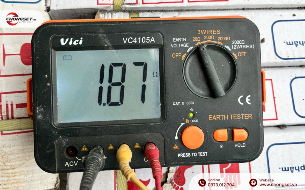 - Sử dụng đồng hồ đo điện trở đất VICI (Hồng Kông) để đo lường điện trở tiếp địa, đảm bảo đạt tiêu chuẩn an toàn.