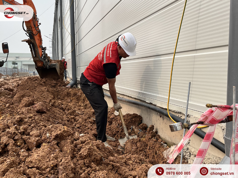 Song song với hệ thống thu sét, hệ thống tiếp địa được thi công đảm bảo khả năng dẫn và phân tán dòng sét xuống đất hiệu quả. Đây là yếu tố có vai trò quyết định đến hiệu quả vận hành của toàn bộ hệ thống.