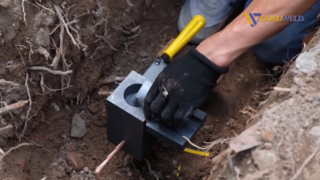 - Hàn nối các cọc tiếp địa, cọc tiếp địa – cáp đồng hoặc cáp đồng – cáp đồng,…