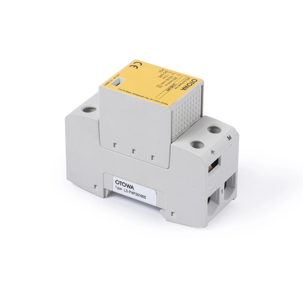 Thiết bị chống sét lan truyền OTOWA LD-PNP25100S (N-PE) là sản phẩm dạng mô-đun 1 cực. Dành cho đường nguồn hệ thống điện, gồm một giá đỡ và mô-đun bảo vệ dạng cắm. Thiết bị được áp dụng cho điện áp Uc=255V; tiếp điểm báo hiệu từ xa cho hệ thống giám sát (tiếp điểm thay đổi nổi).