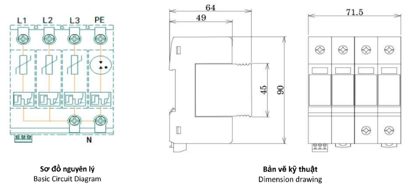 | Mức bảo vệ điện áp giữa dây trung tính và dây tiếp địa (Up) | ≤ 1.5kV |