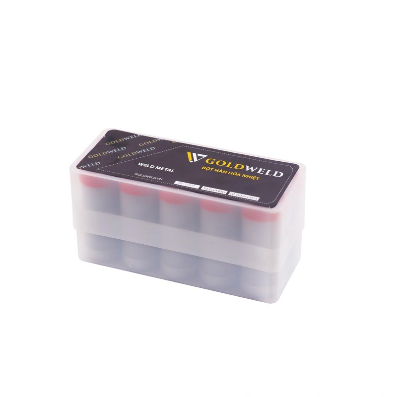 - Thuốc hàn hóa nhiệt Goldweld với đa dạng các kích thước khác nhau từ 45g, 65g, 90g, 115g, 150g, 200g, 250g phù hợp với kích thước mối hàn cũng như loại mối hàn khác nhau.