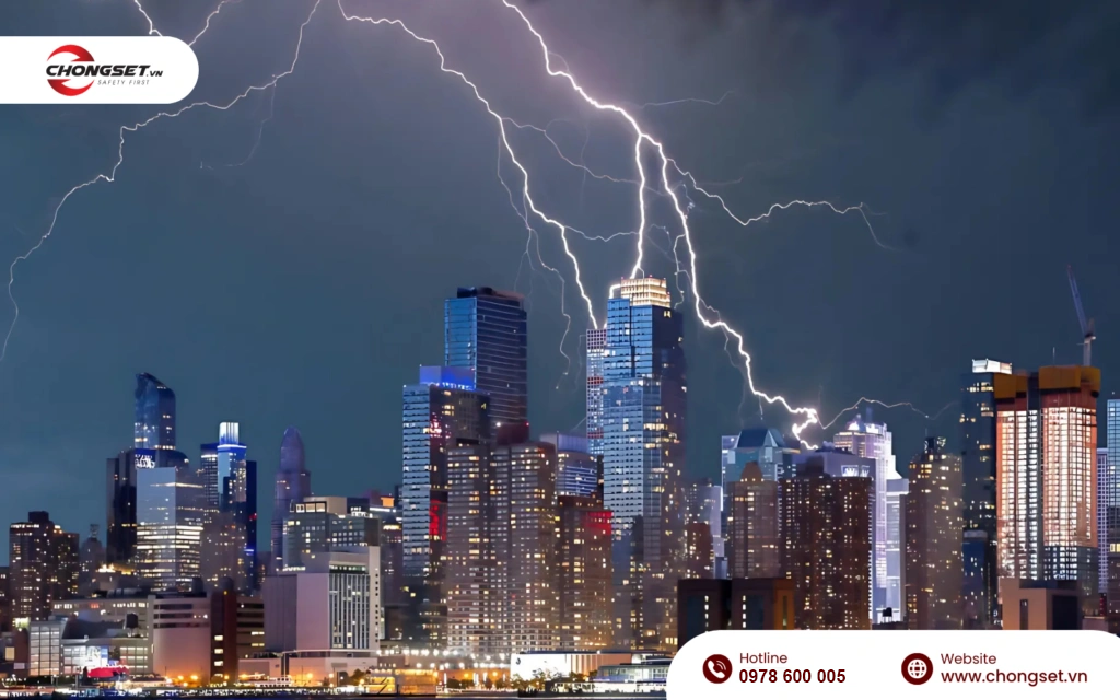 Các tòa nhà cao tầng, các công trình cao ốc văn phòng, chung cư và khách sạn là những công trình có nguy cơ cao bị ảnh hưởng bởi sét.